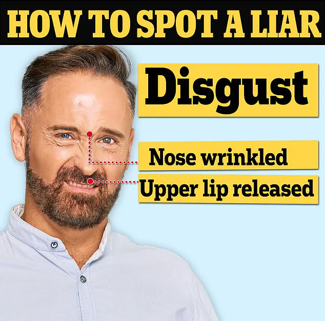 The most definitive sign of deception, however, is the manifestation of disgust on someone’s face when they lie. Van Edwards explained that liars often experience feelings of guilt or discomfort during deceitful acts, leading to involuntary displays of contempt or revulsion. This can be evidenced through subtle physical cues such as nose crinkling and upper teeth exposure—classic indicators of disgust.