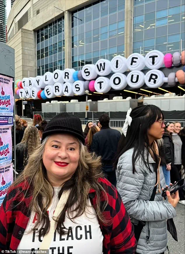 Marcy is pictured above attending Taylor Swift’s Eras tour more than a month before she was diagnosed with the disease. There is no risk that she could have been infected at the time