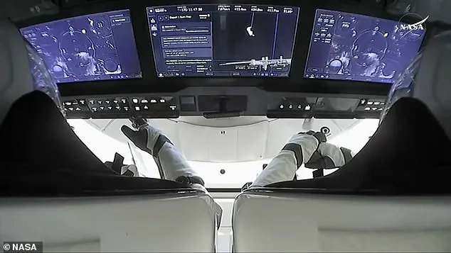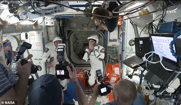 ‘Crew nine is going home,’ Hague, the commander of departing Crew Dragon, announced from the spacecraft moments after takeoff. ‘On behalf of crew nine, it was a privilege to call space home… to live and work… in cooperation for the benefit of humanity. To our colleagues and dear friends who remain on the station, we know the station is in great hands. We’re excited to see what you guys are going to accomplish and we’ll be waiting for ya [sic].’