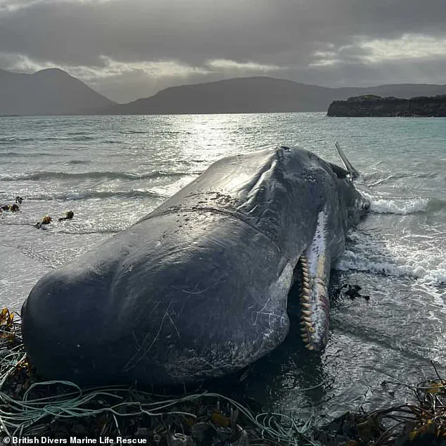 A sperm whale has died after becoming tangled in ropes and stranding on a Scottish island, prompting deep concern among marine conservationists and local communities.