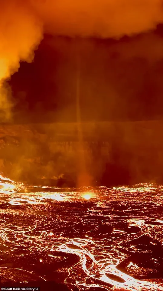 In Malis’ footage, however, this unique lavanado persisted for approximately four minutes during early morning hours on Hawaii’s ‘Big Island.’ The scene depicted lava being shot hundreds of feet into the air within Hawaii Volcanoes National Park, creating a fiery spectacle that lasted just under 13 hours. During this period, Kilauea erupted from both north and south vents, with lava fountains spewing onto the crater floor—where the lavanado was observed.
