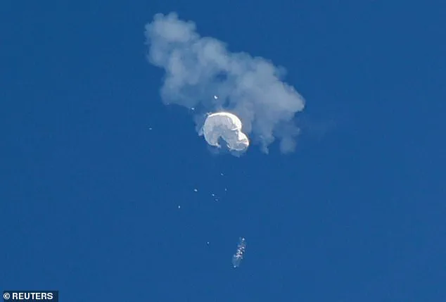 ‘We continue to track and monitor it closely.’ The Chinese government insisted that the device was a civilian meteorological device that had blown off course, but after the balloon altered course and passed over sensitive nuclear sites, it was shot down with a Sidewinder missile fired from an Air Force F-22 Raptor over the Atlantic ocean.