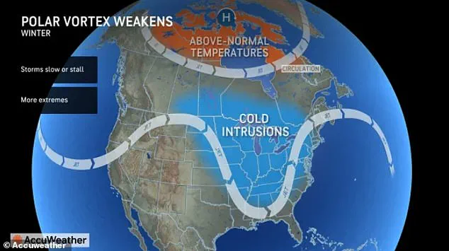Americans in the central and eastern US should expect to see wintry temperatures stick around into April, thanks to a weakening polar vortex up north