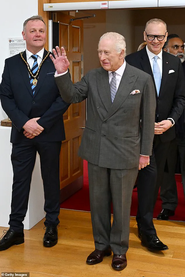 In an engaging moment, circus performers Professor H and Igor put on an acrobatic display that captured the attention of both Charles and Camilla, drawing admiration and applause from everyone present. Speaking afterwards, Professor H remarked: ‘The King said keeping on going does you good.’ The couple’s visit concluded with the unveiling of a commemorative plaque, marking their official presence in Commercial Court.