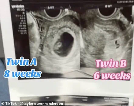 The mother-to-be’s husband Clayton expressed his confusion over the diagnosis alongside Mrs Henderson, who stated that her doctor has never encountered a case of superfetation throughout their professional relationship and only knew about it through medical literature. In a recent TikTok video, Mrs Henderson shared details of her unexpected journey, revealing that one of her fetuses, referred to as Twin B, ceased developing due to the heart stopping mid-gestation.
