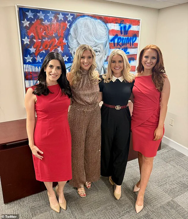 Anna is pictured with press secretary Karoline Leavitt and two other members of the team in November 2024