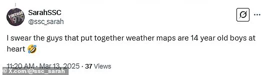 This isn’t the first time a weather system has attracted jokes due to its suggestive shape; an early January storm that spread snow across a 1,500-mile swath of the US also drew similar comments, earning it the nickname ‘the great blizzildo of 2025.’