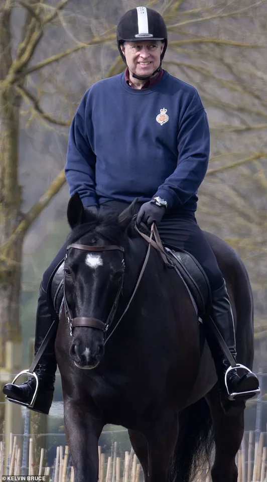Prince Andrew was spotted riding around the Windsor estate on Saturday morning, trading in his usual puffer jacket for a more casual blue sweatshirt as he embarked on his weekly trot through the sprawling Berkshire landscape. The Duke of York, now aged 65, complemented his attire with black jodhpurs and riding boots, along with a black helmet to shield himself from the elements.
