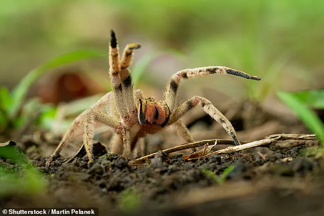 Though the deadly Brazilian wandering spider (pictured) is part of the same family, Acanthoctenus venom poses no threat to humans. Spider expert Paul Hillyard, former curator at London’s Natural History Museum, said: ‘The families known for attaching their egg sac to a banana are harmless to humans.
