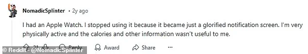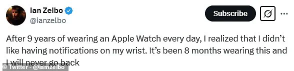 ‘After 9 years of wearing an Apple Watch every day, I realized that I didn’t like having notifications on my wrist,’ one user posted. ‘It’s been 8 months since I stopped using it and I will never go back.’ Another echoed this sentiment: ‘I had an Apple Watch.
