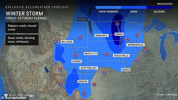 As if these challenges weren’t enough, a formidable blizzard was set to sweep across the northern Plains and Rockies, delivering up to a foot of snow in isolated areas.