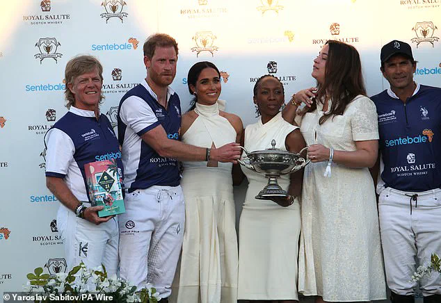 In footage from the event, it is evident that the Duchess directed people around a stage after handing Harry a trophy at the Royal Salute Polo Challenge held at the USPA National Polo Center.