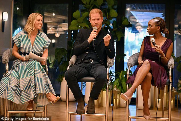 (From left) Alix Lebec, founder and CEO of Lebec, Prince Harry and Sophie Chandauka during the Sentebale ‘Potential is Waiting’ panel at the Ritz Carlton Hotel in Miami in April 2024.