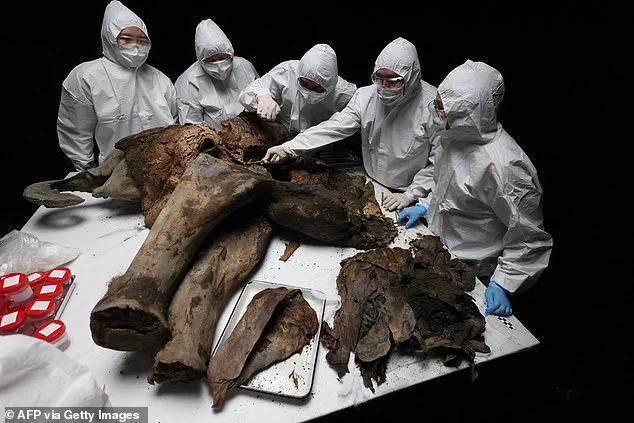 After observing that the mammoth had ‘almost completely thawed out,’ the locals constructed a makeshift stretcher to lift Yana safely to the surface, preventing any further deterioration or scavenging by other animals.