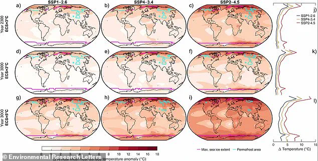These graphs plot global changes in surface air temperature and atmospheric CO2 concentration from 1850–3000 under various scenarios, illustrating the profound impact of climate change. ‘Our research makes it unmistakably clear – today’s actions will determine the future of life on this planet for centuries to come,’ said co-author Johan Rockström, director at PIK.