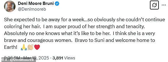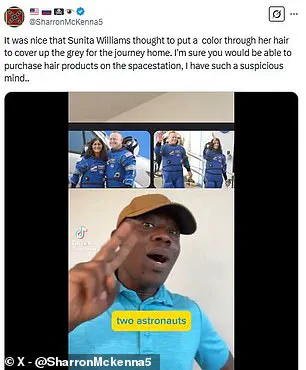 On X, formerly Twitter, one commenter wrote: ‘Well, looks like Suni Williams, stranded on the International Space Station, has run out of hair dye’.