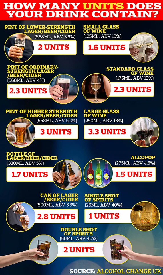 The NHS recommends no more than 14 units of alcohol per week.