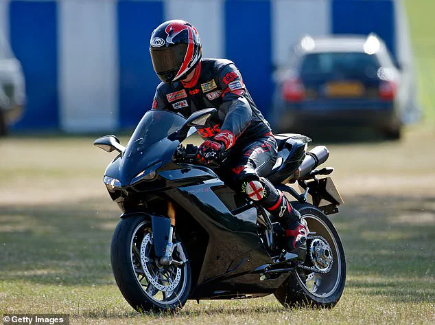The Ducati is known for its impressive top speed of 185mph, and William was seen wearing full leather motorcycle armor.