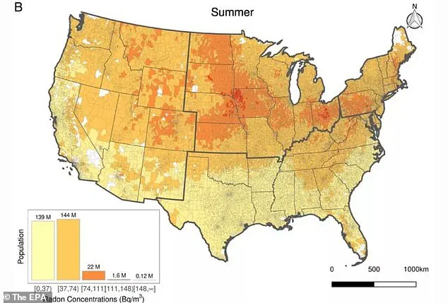 The recent study by researchers revealed that an alarming number of Americans—9.7 million—live in areas where radon levels exceed a critical threshold of 148 Bq/m³ during winter months.