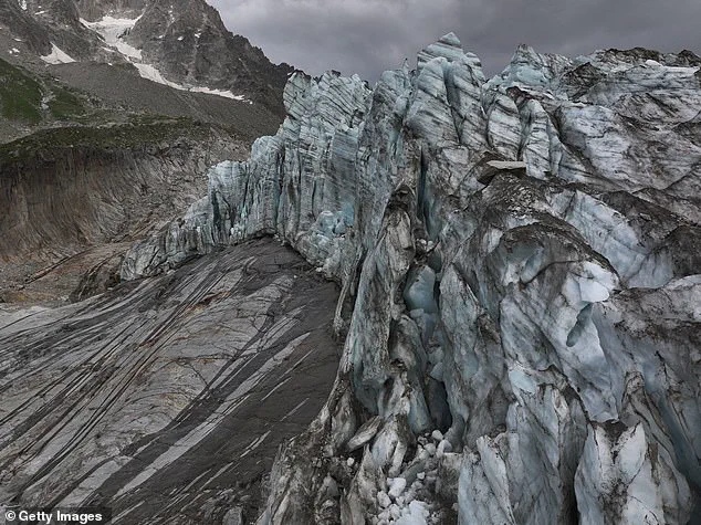 Pictured: the Argentière glacier in France which has retreated more than a kilometre since 1990.