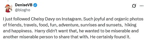 The post sparked a wave of admiration for Chelsy, with many speculating about Harry’s feelings upon seeing her flourishing life.