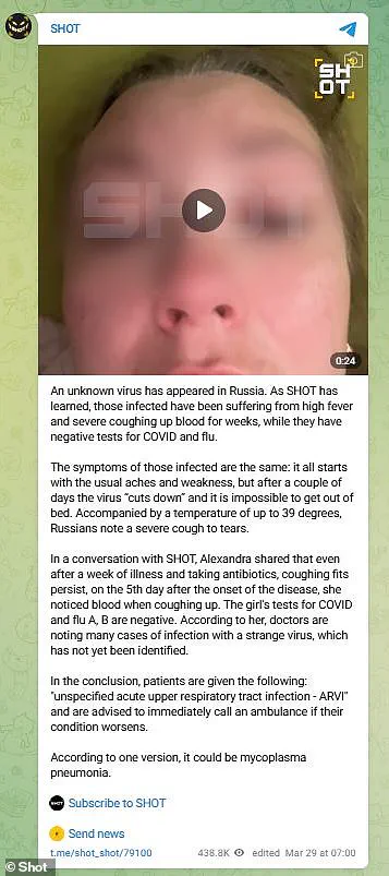 One patient, identified only as Alexandra and featured prominently in Telegram posts, described her experience with the mysterious illness: “An unknown virus has appeared in Russia,” she wrote. “Those infected are suffering from high fever and severe coughing up blood for weeks, while tests show negative results for both COVID-19 and influenza.” Her symptoms began like those of any common cold but escalated rapidly over a couple of days, leaving her bedridden with a temperature as high as 39°C.