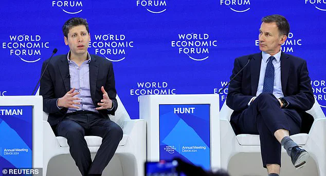 ‘It’s super fun seeing people love images in ChatGPT,’ Altman (left) said. ‘But our GPUs are melting. We are going to temporarily introduce some rate limits while we work on making it more efficient.’ Pictured: Sam Altman and British Chancellor of the Exchequer Jeremy Hunt attend the 54th annual meeting of the World Economic Forum in January 2024