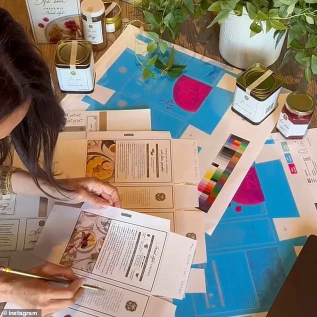 The video of Meghan filmed inside the kitchen of her and Prince Harry’s Montecito mansion showed printouts of the packaging for certain items, such as the tins of her loose-leaf tea available in variants such as hibiscus, peppermint, and lemon ginger