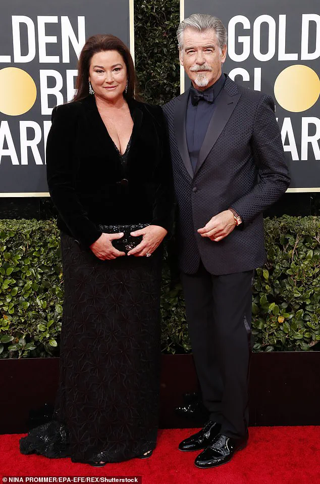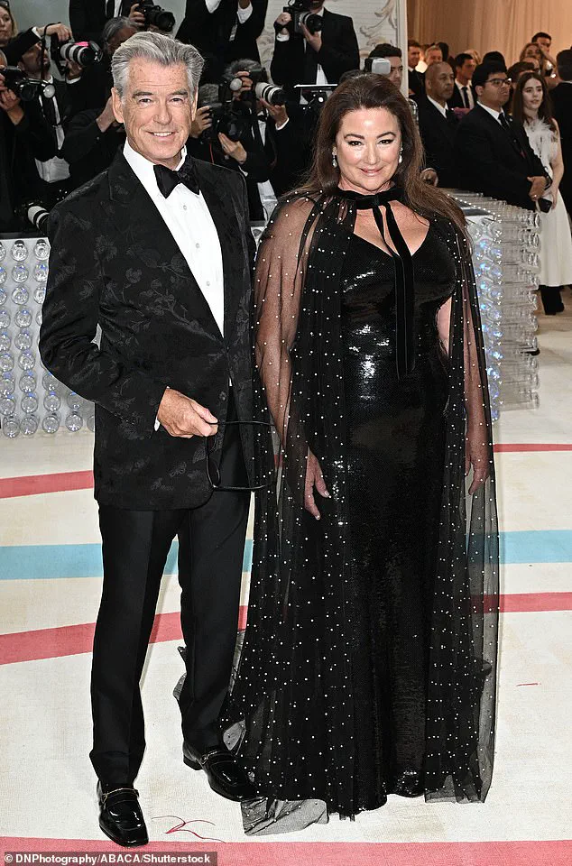 Smith, who has been by Brosnan’s side since 1994 and married him seven years later in 2001, stepped out wearing an elegant black lace dress that reached her thighs.