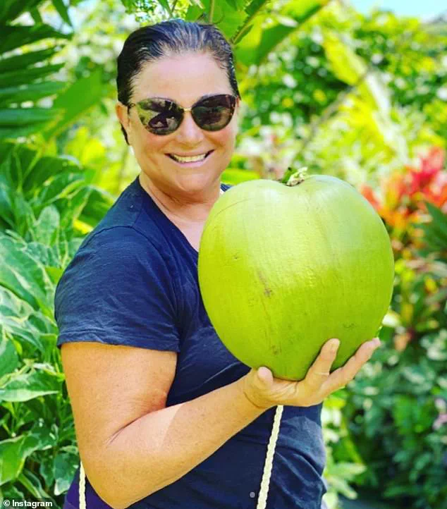 Holding a fresh green coconut with a radiant smile in one photo, she captioned it ‘#growyourownfood #tropicalliving’, indicating her active engagement with natural food sources.