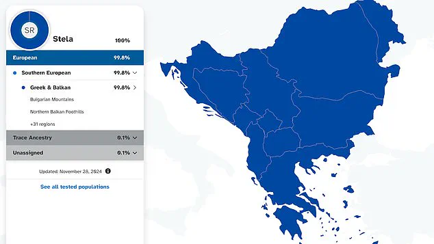 MyHeritage claims Stella is 71.1 per cent Balkan and 18.6 per cent Greek and Italian