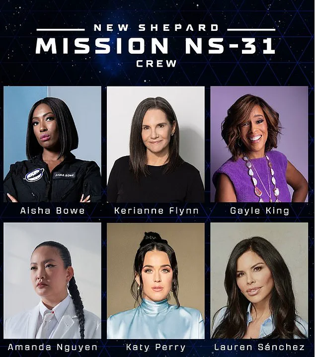 This ambitious mission features celebrities like Katy Perry, Gayle King, and Lauren Sanchez alongside accomplished professionals Aisha Bowe, Amanda Nguyễn, and Kerianne Flynn.