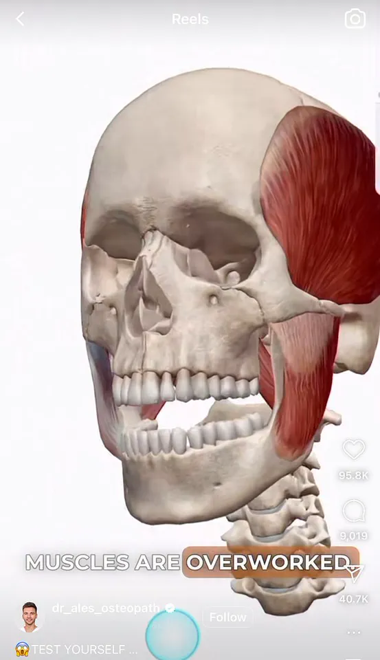 He added in the caption: ‘A tense masseter [jaw] muscle pulls the facial tissues from the edge of the jaw inward toward the center of the face—toward the cheekbones and nose.