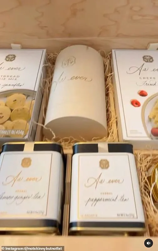 She expressed her delight on Instagram, showing off the wooden box containing various items from As Ever, including three types of tea, cookie and crepe mixes, and Meghan’s famous jam in keepsake packaging.