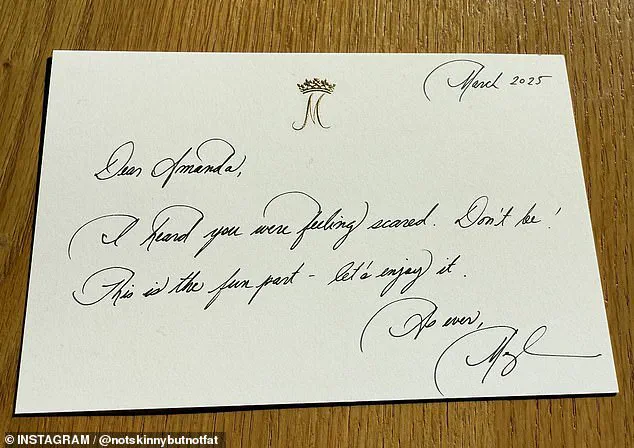 Hirsch, urging her ‘not to be scared’ and encouraging her to ‘enjoy it.’ The handwritten letter was accompanied by Meghan’s regal logo and signed ‘As Ever, Meghan,’ a move that many saw as an attempt to win over critics before the show’s premiere.