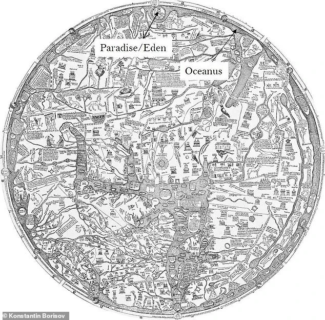 In his 2024 paper published in Archaeological Discovery, Borisov points to ancient maps depicting a circular world surrounded by a river labeled ‘Oceanus.’ At the top of these maps is often marked as ‘Paradise,’ also known as Eden.