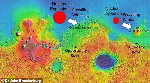 Dr John Brandenburg published a study in 2014 that found chemical elements in the Red Planet’s atmosphere matched those around nuclear test sites on Earth