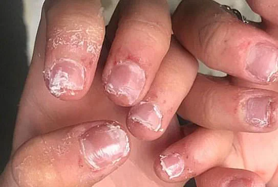 Symptoms range from loose and falling-off nails and sores appearing on fingers to red and swollen cuticles.