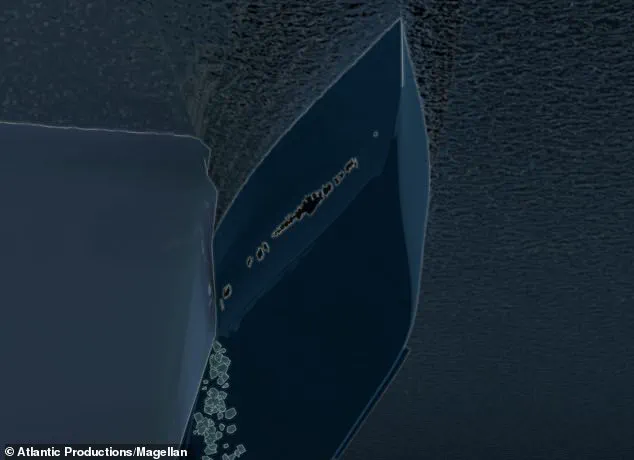 In all, the gash stretched across six compartments, from the ‘forepeak’ at the very front of the ship to the No. 5 boiler room further back.