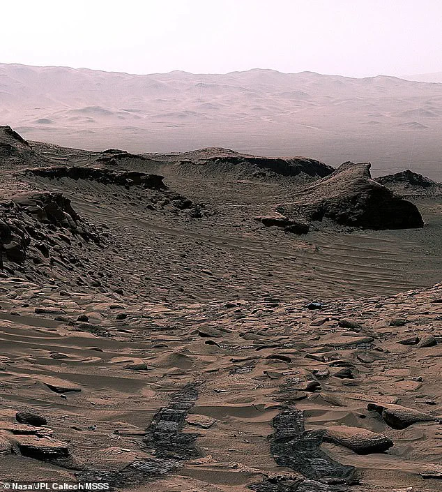 The NASA Curiosity rover (pictured) found large deposits of a carbon-rich mineral on Mars. Here, it can be seen exploring the Red Planet’s surface