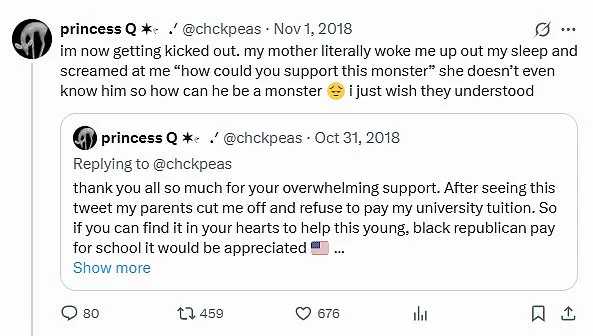 go to college and get a better job,” like anyone can afford that, and it won’t guarantee you a job either.’\n\nShe also mentioned that her initial post was intended as a ‘joke’ mocking another black girl she saw posting about being a Trump supporter.