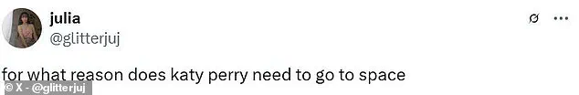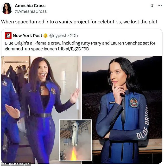 Social media users have slammed Katy Perry and Blue Origin, dismissing their recent space launch as nothing more than a ‘joyride for the super-rich’.