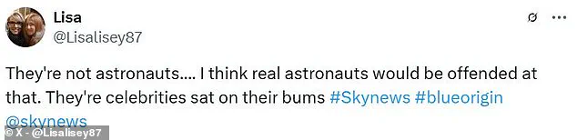 They’re celebrities sat on their bums.” Others echoed similar sentiments, questioning whether this kind of space tourism truly merits the title of astronaut or contributes meaningfully to advancing human understanding and capabilities beyond Earth’s atmosphere.