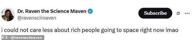 Dr Raven Baxter, an American science communicator, expressed her frustration on social media: “I could not care less about rich people going to space right now.” This sentiment reflects broader worries within the community regarding inequality and the direction of space exploration as it becomes increasingly privatized.