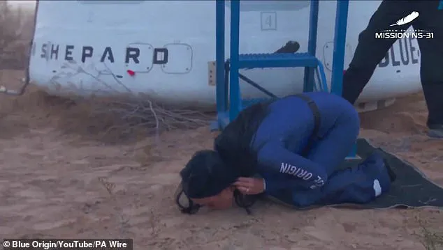 Founder Jeff Bezos was present to greet the returning crew members who kissed the ground after exiting the vehicle.