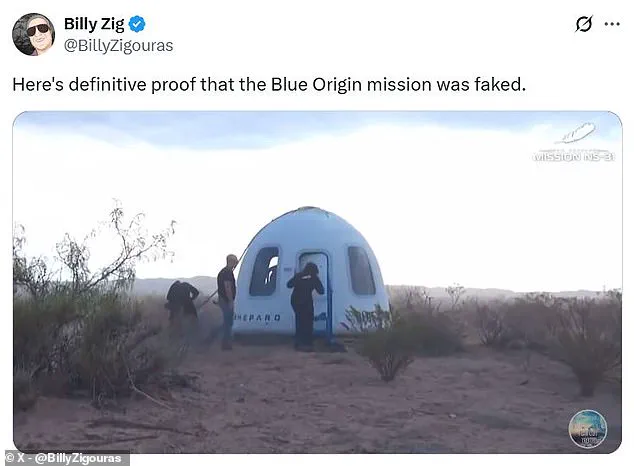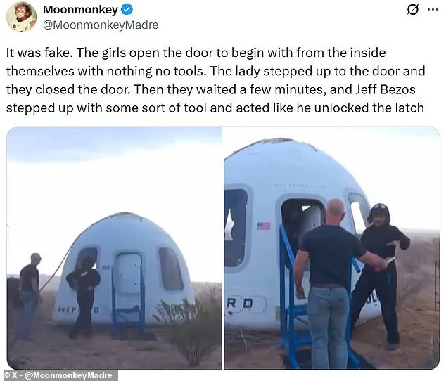 For many people who had already been sceptical about the mission, the fact that Jeff Bezos appeared to pretend to open the hatch was enough to prove that the entire project was faked
