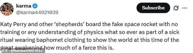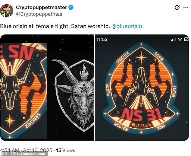 Another user alleged that the crew performed a ‘sick ritual’ while wearing Baphomet-inspired attire during their journey into space.