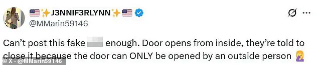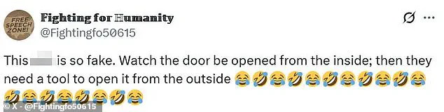 They then waited a few minutes and Jeff Bezos stepped up with some sort of tool and acted like he unlocked the latch.’ Another chimed in: ‘Can’t post this fake s*** enough.