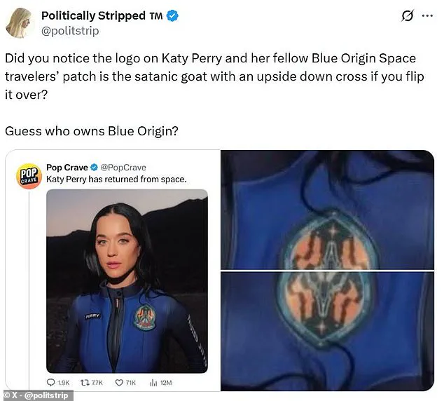 One commenter on social media recently pointed out a peculiar detail about the Blue Origin NS-31 mission patch worn by Katy Perry and her fellow space travelers.