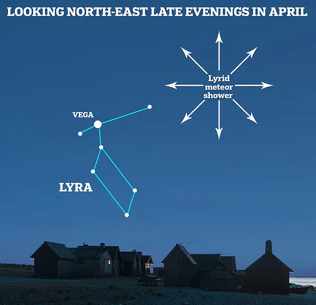 The Lyrid shower (pictured) takes its name from the constellation of Lyra, where the meteors appear to originate from